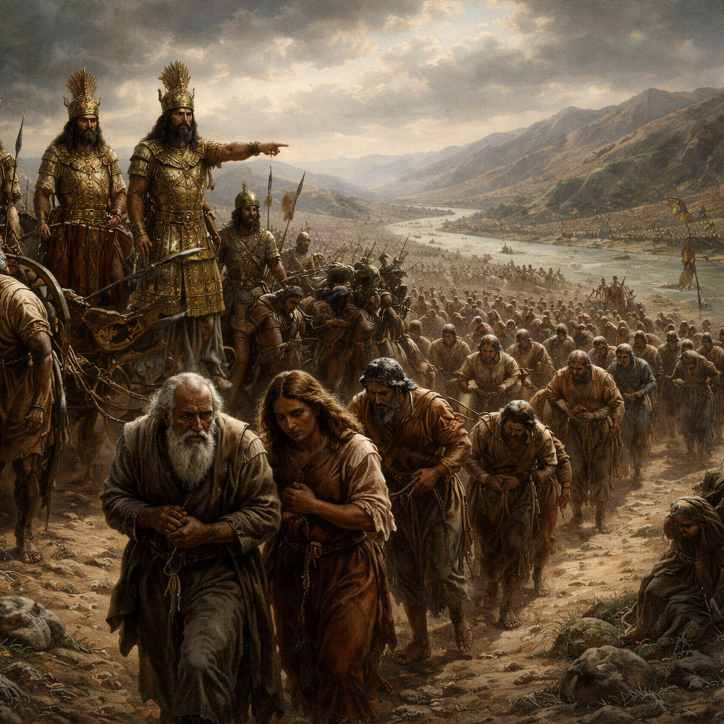 Express without words "And the God of Israel stirred up the spirit of Pul king of Assyria, and the spirit of Tilgathpilneser king of Assyria, and he carried them away, even the Reubenites, and the Gadites, and the half tribe of Manasseh, and brought them unto Halah, and Habor, and Hara, and to the river Gozan, unto this day.” (1 Chronicles 5:25-26, KJV)