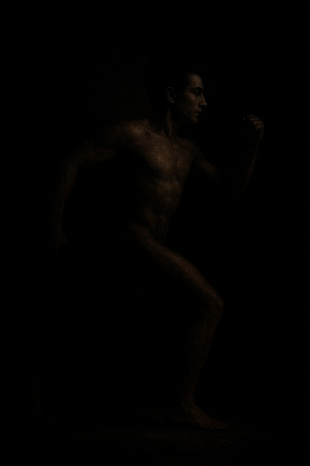 a man standing in the dark with no shirt on