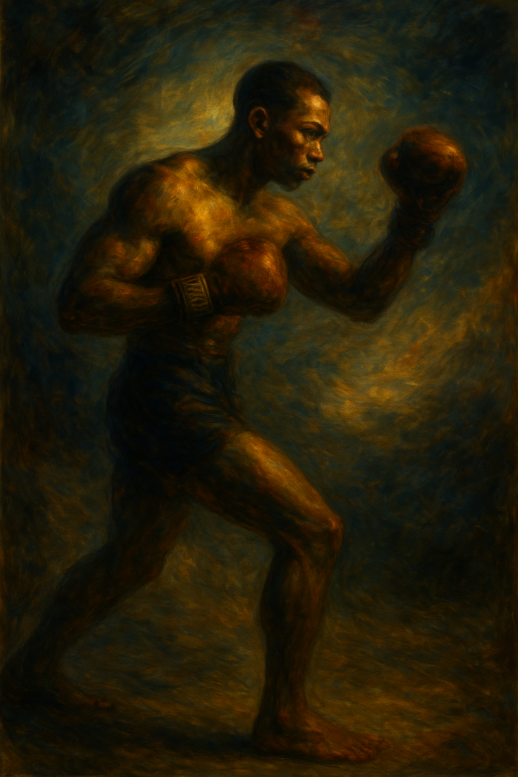 a painting of a man with a boxing glove