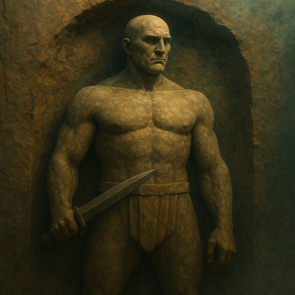 a painting of a man with a knife in his hand