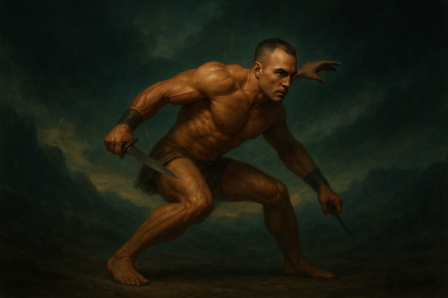 a painting of a man with a knife in his hand