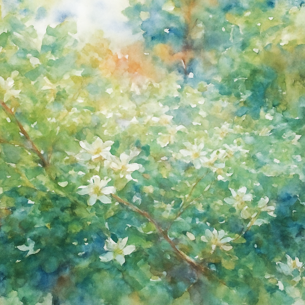 a painting of a tree with white flowers