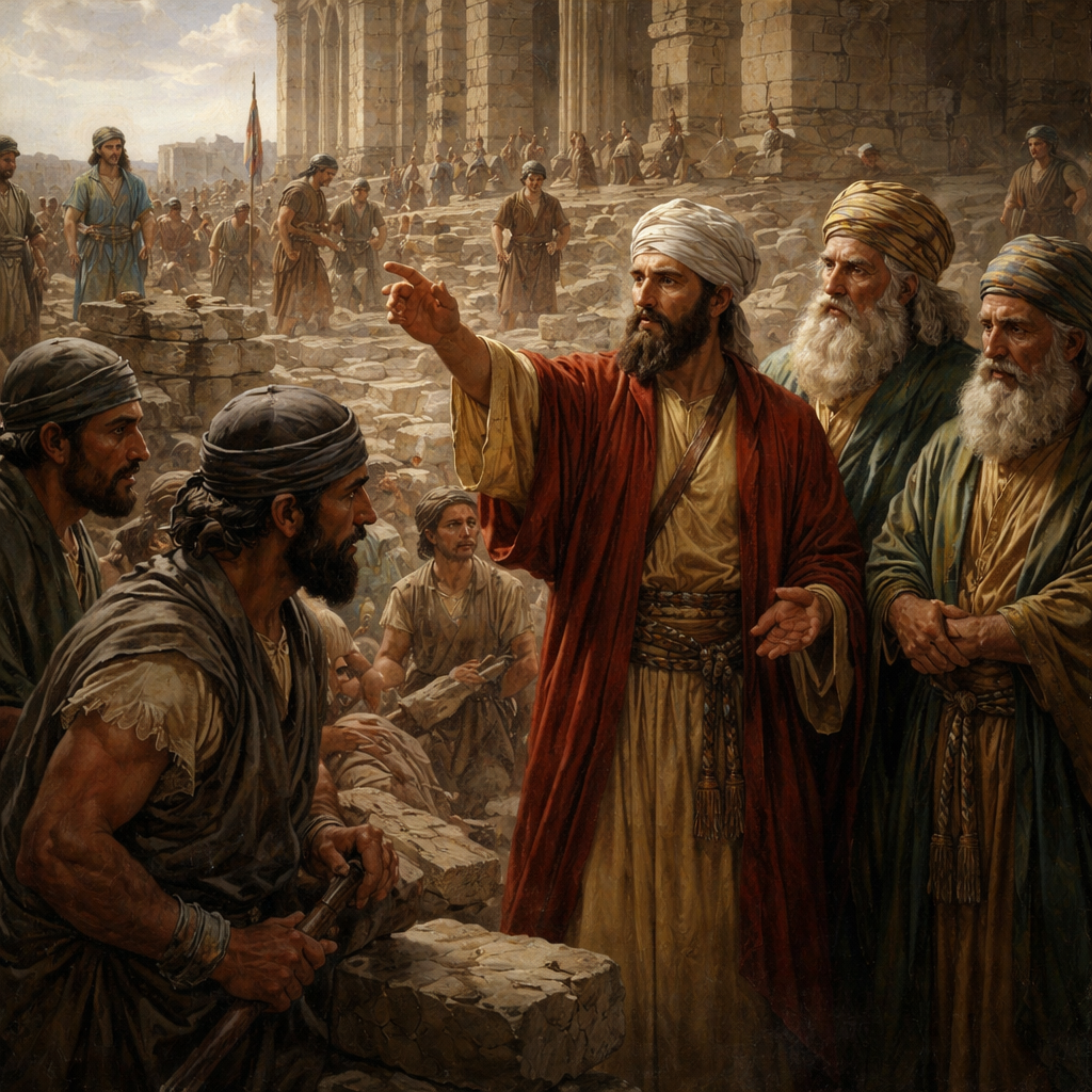Express without words “But Zerubbabel, and Jeshua, and the rest of the chief of the fathers of Israel, said unto them, Ye have nothing to do with us to build an house unto our God; but we ourselves together will build unto the LORD God of Israel, as king Cyrus the king of Persia hath commanded us.” (Ezra 4:3, KJV)
