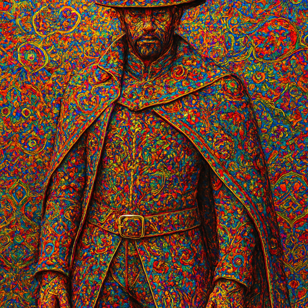 a painting of a man wearing a hat and coat