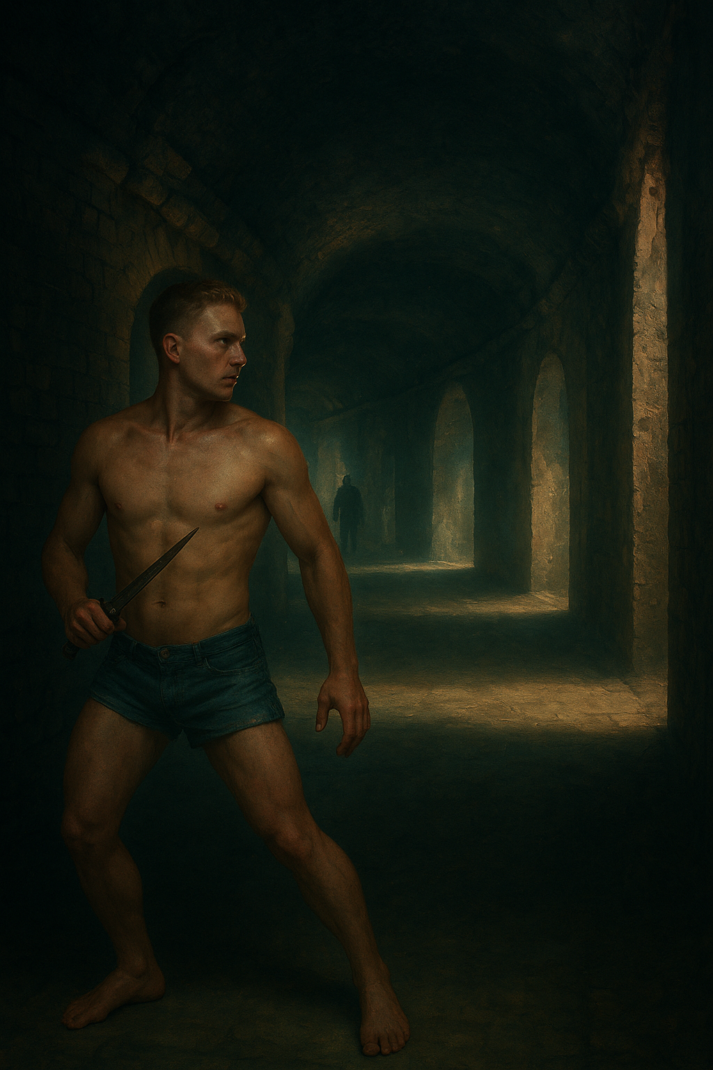 a painting of a man with a knife in his hand