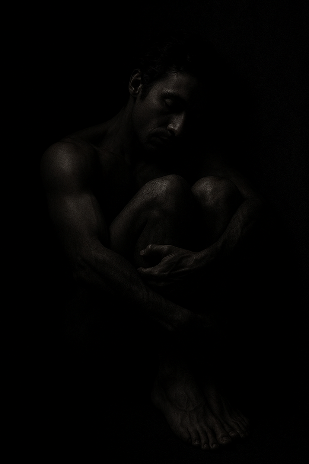 a black and white photo of a naked man
