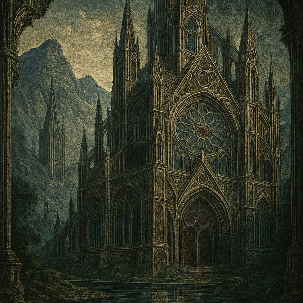 Medieval European style featuring pointed arches, flying buttresses, and soaring spires reaching toward heaven with intricate stone details.