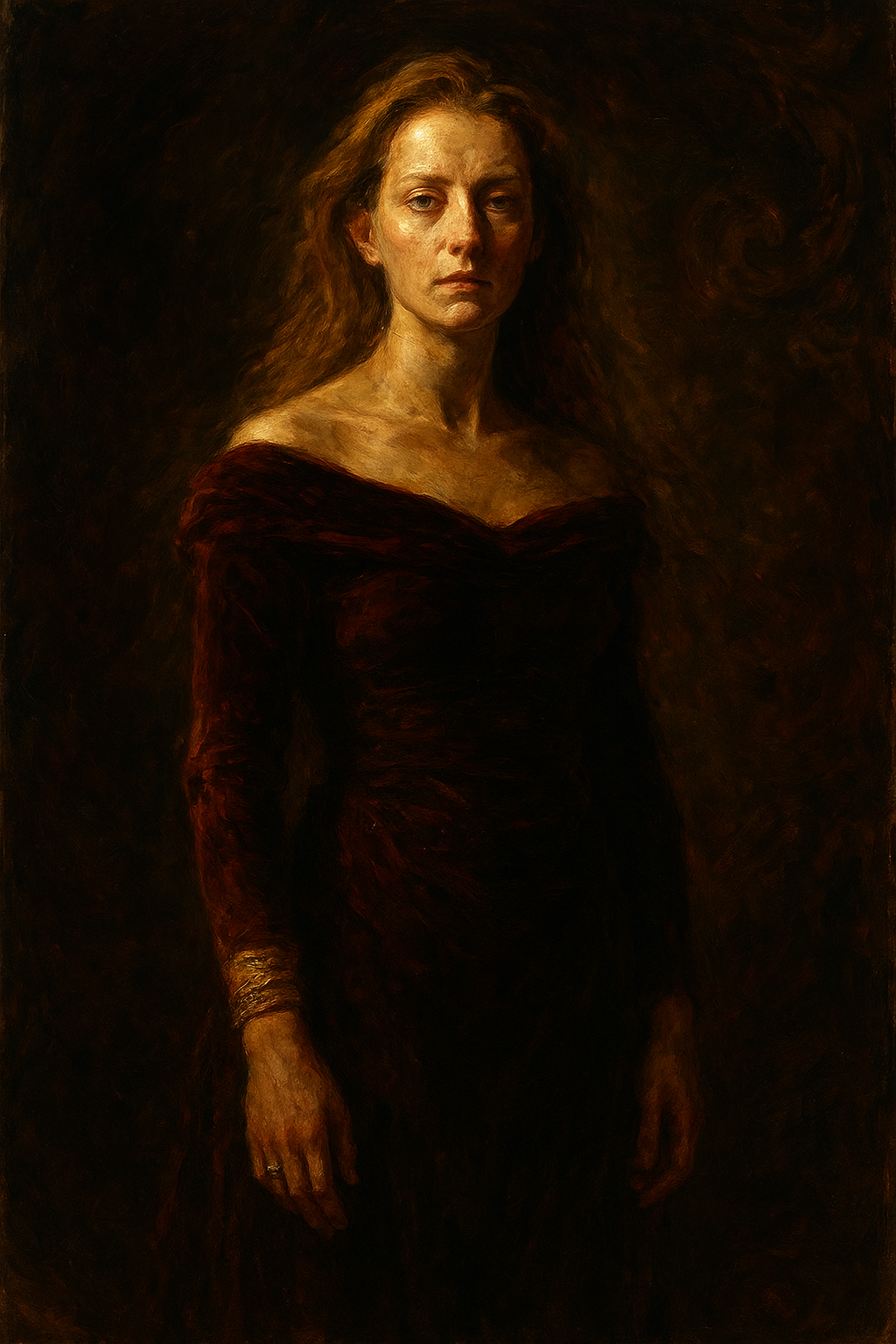 a painting of a woman in a red dress