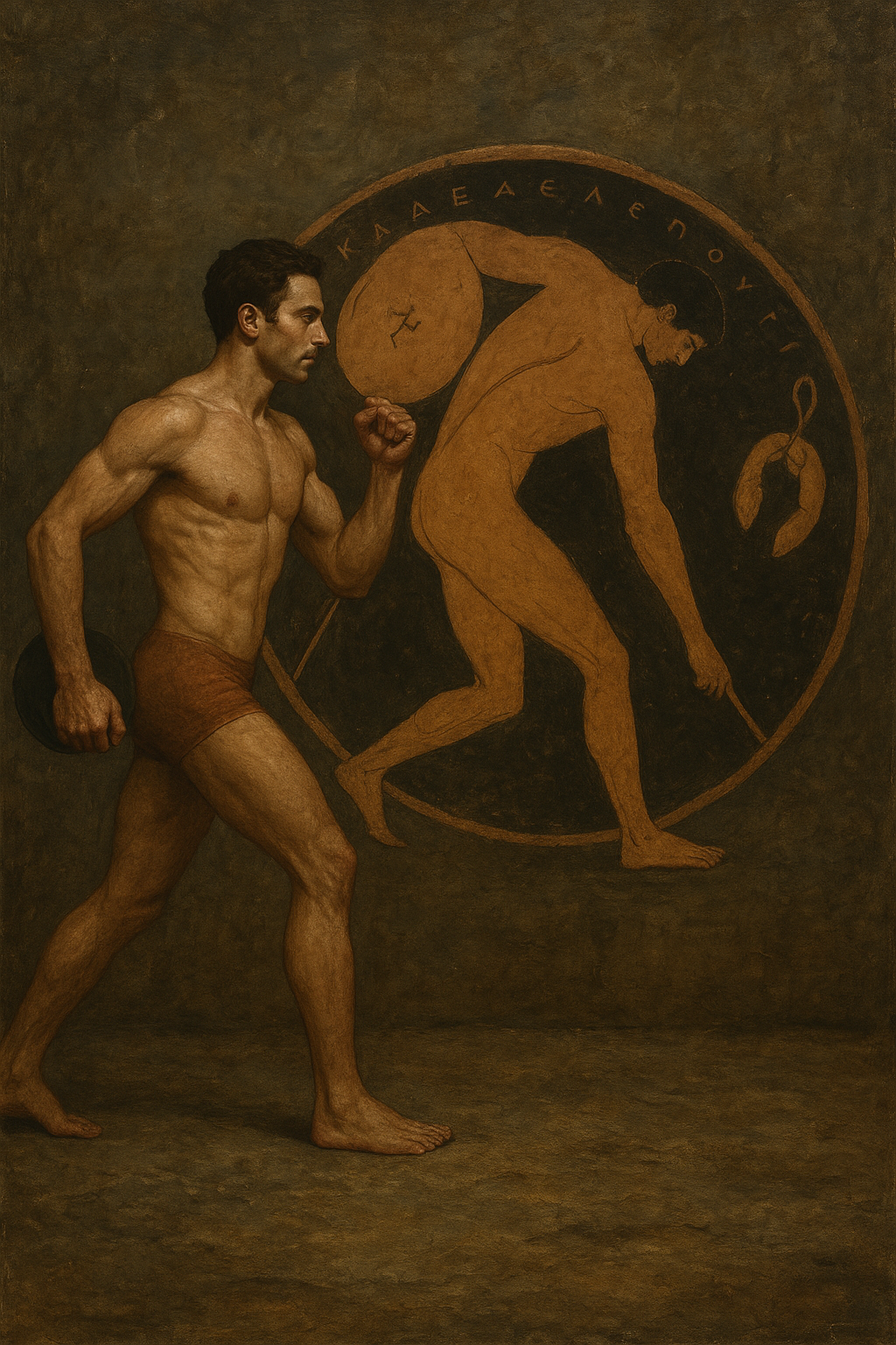 a painting of a man holding a stick