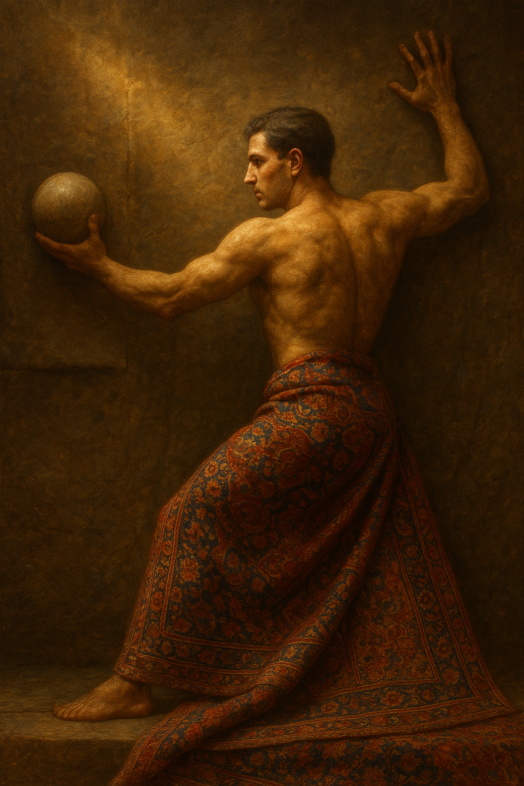 a painting of a man holding a ball