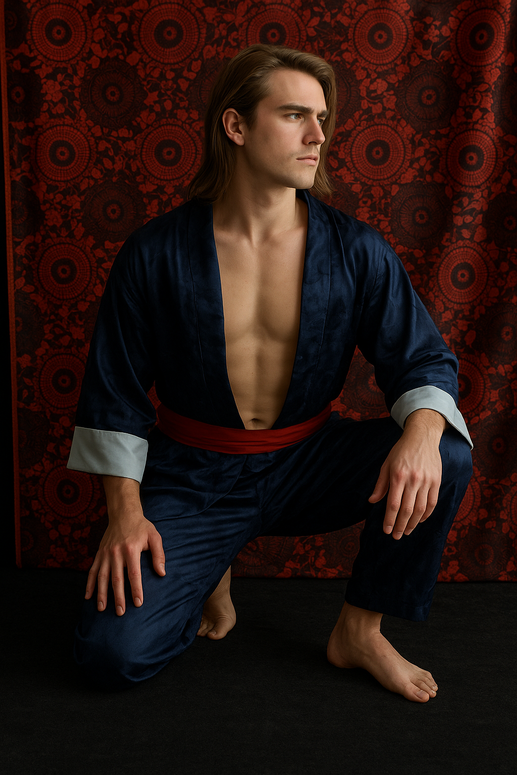 a man in a kimono poses for a picture