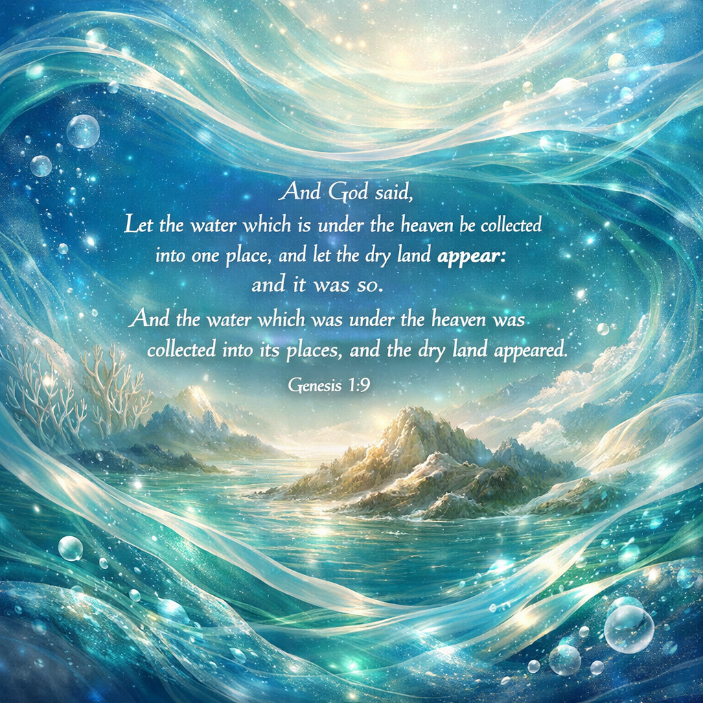 And God said, Let the water which is under the heaven be collected into one place, and let the dry land appear, and it was so. And the water which was under the heaven was collected into its places, and the dry land appeared.