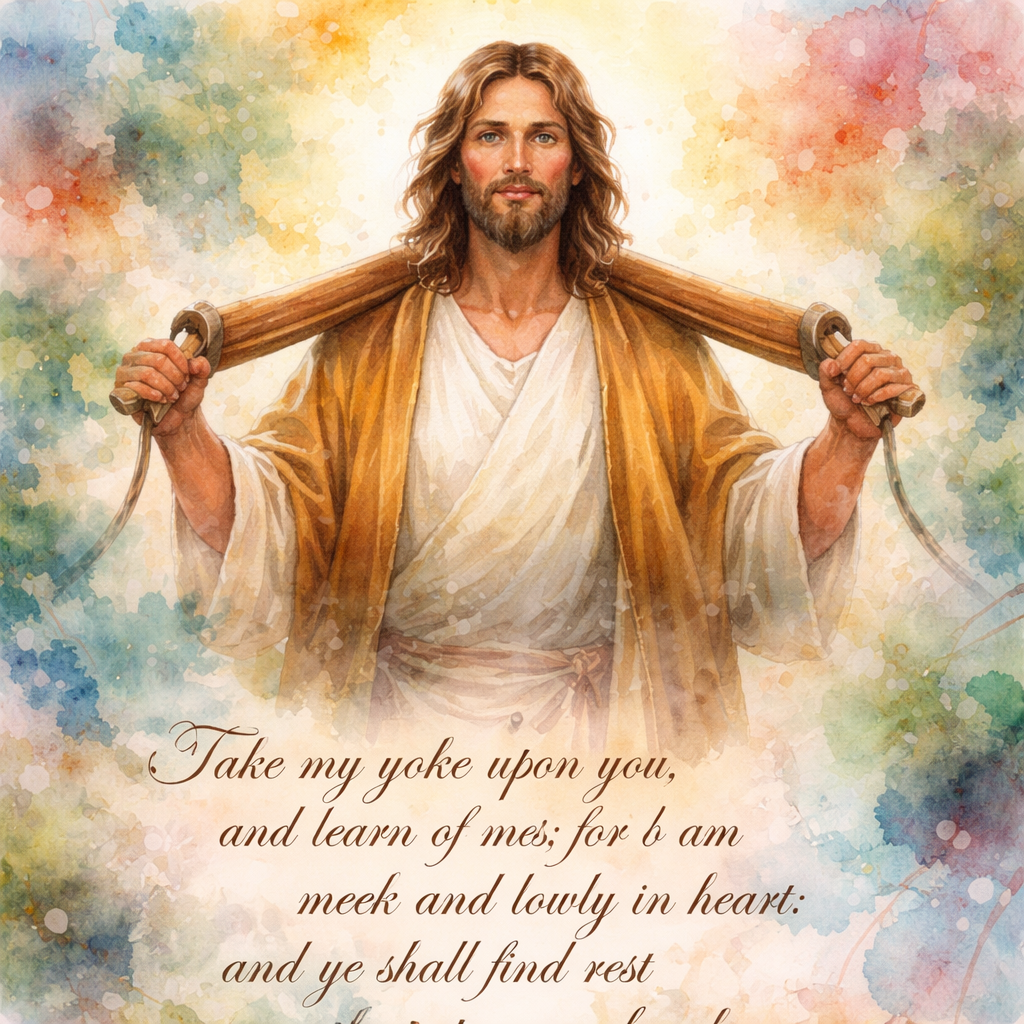 “Take my yoke upon you, and learn of me; for I am meek and lowly in heart: and ye shall find rest unto your souls.” (Matthew 11:29, KJV)